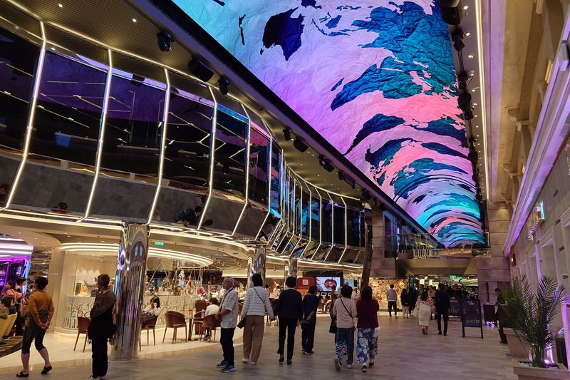 96mのドーム型の天井LEDスクリーンが、時間帯によって様々な映像を映し出し、